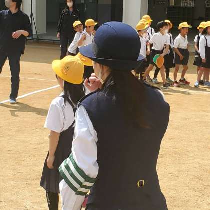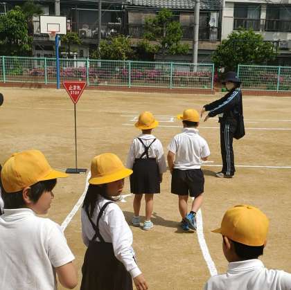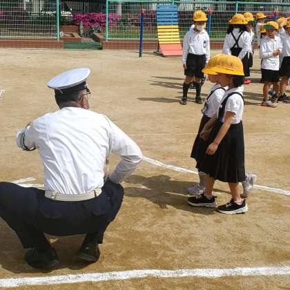 今日は大阪府警交通課の方にお越しいただき、交通安全学習を行っています。