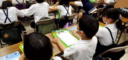 一生懸命お話を聞き、メモをとっています。さすが4年生!