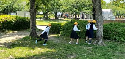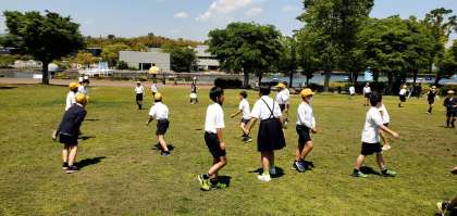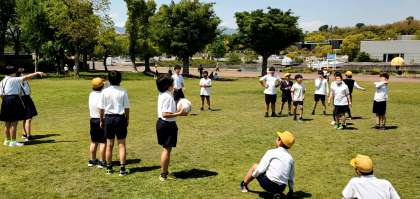 お弁当を食べ終わり、ドッジボールをしたり、だるまさんが転んだをしたり、思い思いに遊んでいます。
