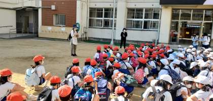 今日は3・4年生の遠足です。鳴尾浜公園に行きます。午前8時40分、予定どおりの時刻に学校を出発しました。