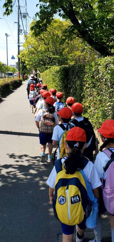 元浜緑地に向かって歩いています。きちんと並ぶことが出来ていて素晴らしいです。