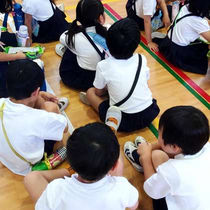 始めに講堂に集まって説明を受けた後、グループごとに出発しました。