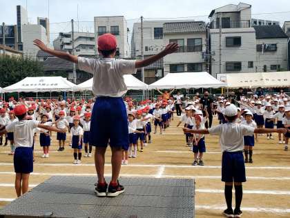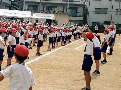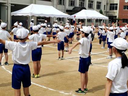 今日の1時間目は運動会の全体練習をしました。開会式や閉会式、またラジオ体操などを行いました。
