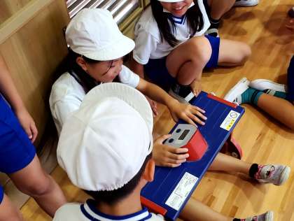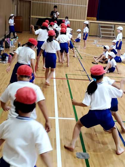 今日の3時間目、3年生が体育館で体力テストを行っていました。