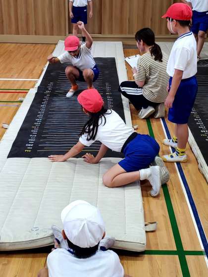 上から順に反復横跳び、長座体前屈、立ち幅跳びをしています。