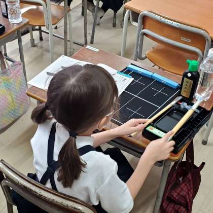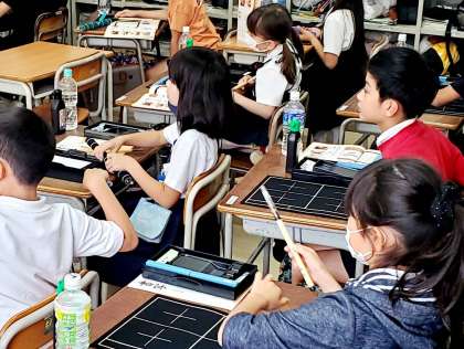今日の2時間目、3年生が毛筆書写の学習をしている様子です。しっかりと正しい道具の使い方を覚えて、集中して文字を書く楽しさを味わってほしいです。
