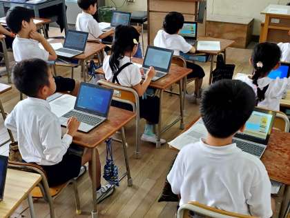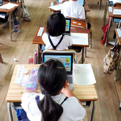 2組はタブレットを使う練習をしていました。少しずつ扱いにも慣れてきています。