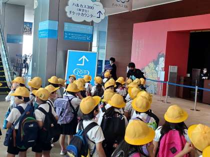 今日は3年生が社会見学に出かけています。あべのハルカスにのぼるなどして、大阪の町の様子を調べます。よいお天気になって本当によかったです。