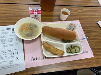 6月16日(金)1〜4年生の保護者対象にPTA学校給食試食会が3年ぶりに、56名の参加で、開催されました。保健給食委員長、教頭先生のあいさつの後、栄養教諭より学校給食についての説明があり、いよいよ給食の試食。今日の献立は、「コッペパン(アプリコットジャム)、牛乳、サーモンフライ、豆乳スープ、きゅうりのバジル風味サラダ」でした。久しぶりの給食で、「おいしかった!」との声がありました。ご参加いただきありがとうございました。