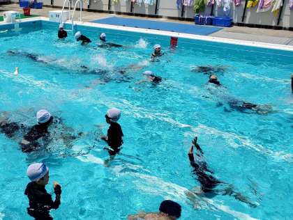 3時間目は2年生のプール開きでした。さすが2年生は昨年度の経験があるので、上手に潜ったり浮いたりすることができていました。