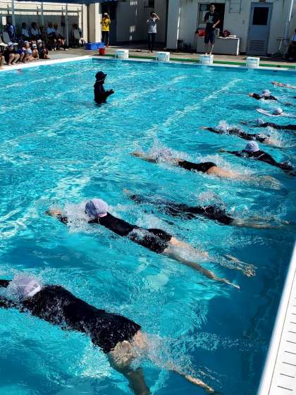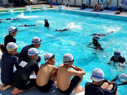 高学年は早速どのくらい泳ぐことができるか確認しています。ぜひそれぞれの目標をしっかり持って練習してくださいね。