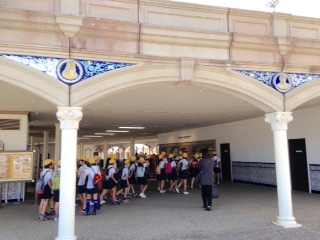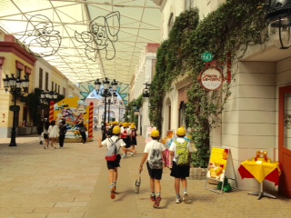 スペイン村に到着。グループでの活動が始まっています。