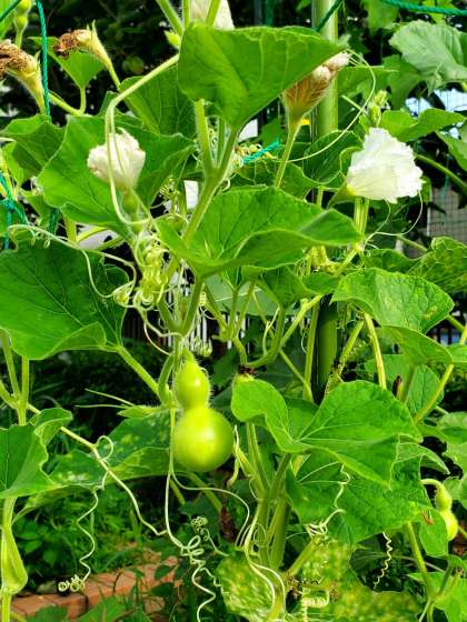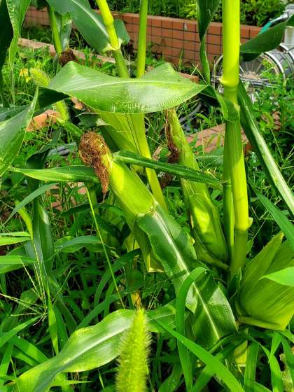 今朝、運動場を見回っていた時に撮影した写真です。ひまわりが大きく背を伸ばし、ひょうたんやトウモロコシも順調に育ってきていました。