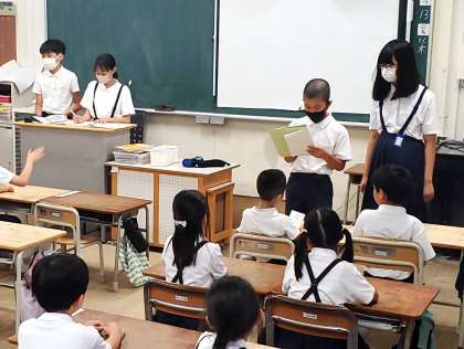 今日の朝の会の時間はたんぽぽ班に分かれて、9月に行うお祭りで何をするかを話し合いました。6年生がしっかりとリーダーシップを発揮してくれています。