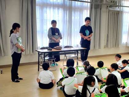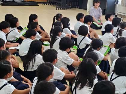 今日の2・3時間目、新橋筋商店街の加茂さんをゲストティーチャーにお招きして、商店街の歴史などについて教えていただきました。