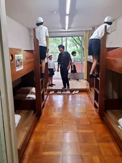 お部屋の様子です。二段ベッドがあり、奥に畳スペースがもうけられています。