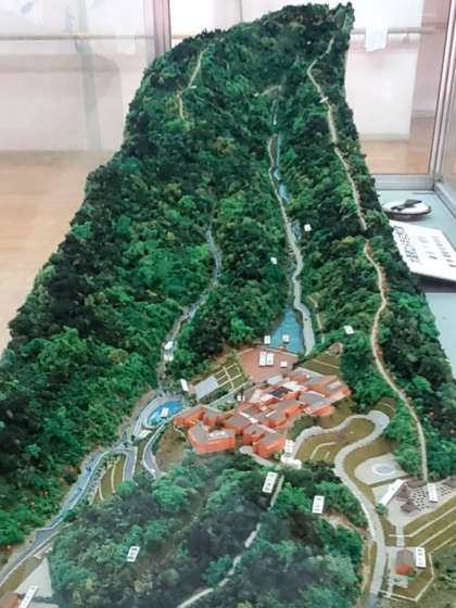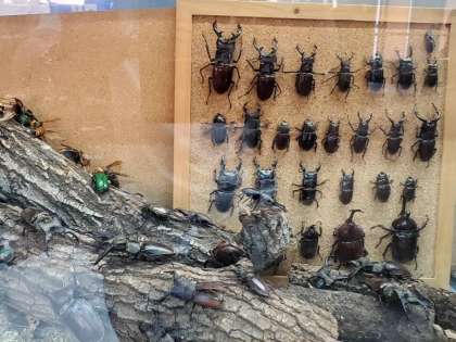 宿舎内の展示です。周辺にいる虫や魚などが展示されています。1番下は宿舎を含むこの周辺のジオラマです。