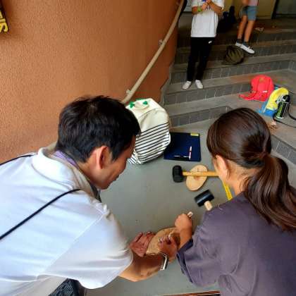 磨き終わったら先の部分をハンマーで打ち付け、絵付けをするなどして完成です。
