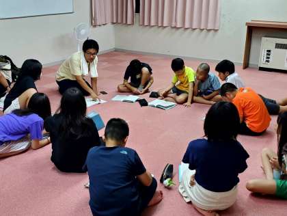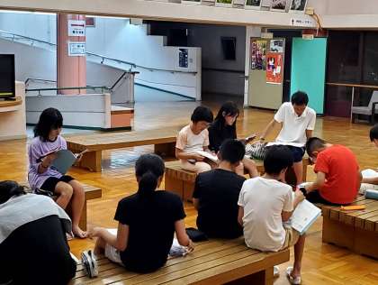 午後9時20分、リーダー会議をしている様子です。今日の反省や明日の打ち合わせをしています。この後、各部屋でミーティングや就寝準備をして、午後10時に消灯します。