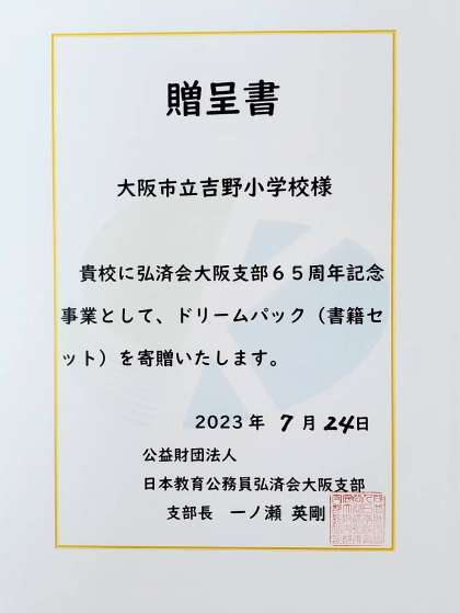 本年度、吉野小学校に日本教育公務員弘済会より本を寄贈していただきました。