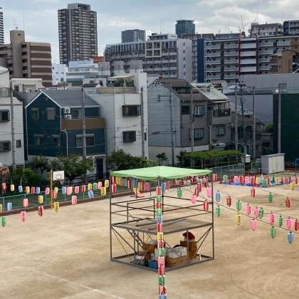 昨日、午後より関係の皆様のご尽力により、今週金曜日に行われる盆踊りのやぐらが完成しました。