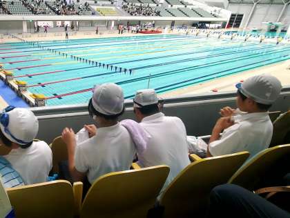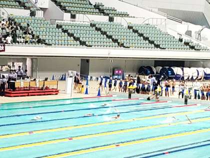 今日は門真南にあるラクタブドームプールに来ています。午前8時過ぎ、ウォーミングアップタイムがスタートしました。