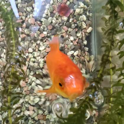ご覧の写真は学校の水槽で飼っている金魚の金太郎(金ちゃん)です。もう飼い出して5年目になるそうで、今では人が近くに来るとこうしてエサをねだってきます。可愛らしくて癒されます。