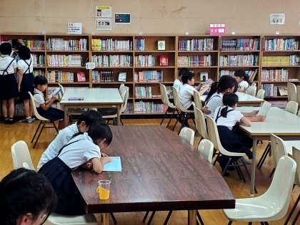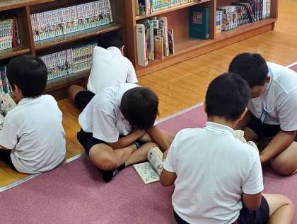 今日のお昼休み、図書館を開放していたので覗いてみると。たくさんの子どもたちが静かに本を読んでいました。まだまだ昼間は暑いので、こうして涼しい場所で過ごすのもいいですよね。