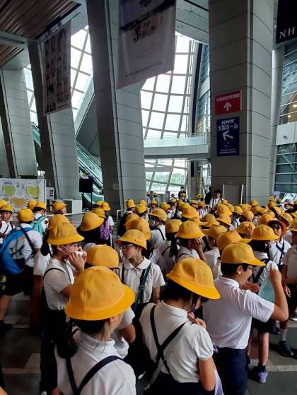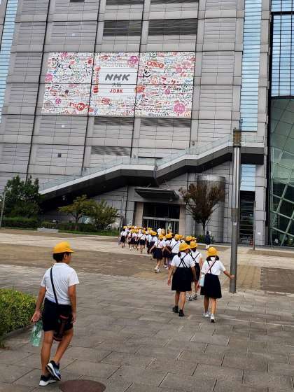 今日は4年生が谷町四丁目にあるNHKホールに観劇会に出かけています。午前9時半、到着し、始まりを待っています。