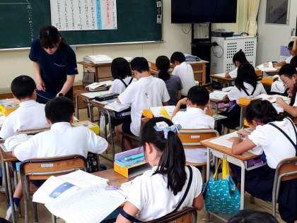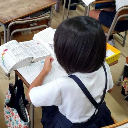 ご覧の写真は3年生が国語の学習をしている様子です。今日は国語辞典を使って意味調べをしていました。
