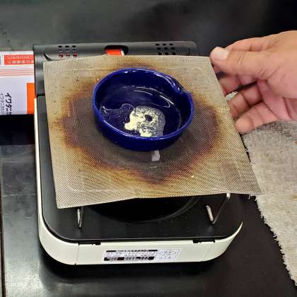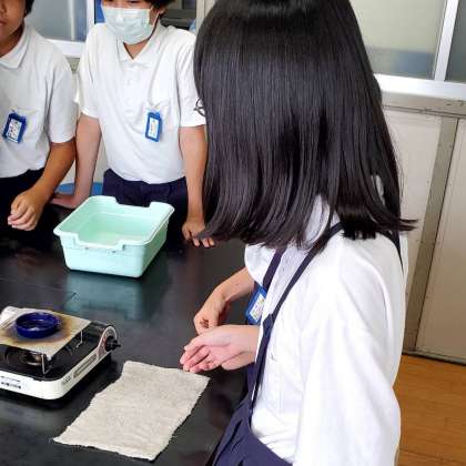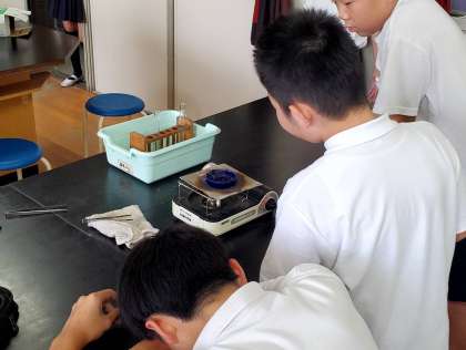 ご覧の写真は6年生が理科室で実験をしている様子です。今日は塩酸に鉄とアルミニウムを入れて溶かす実験をしていました。