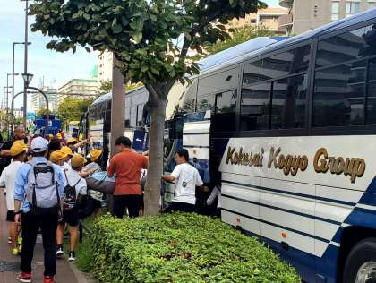 午前7時半、バスに乗り込みました。たくさんのお見送りありがとうございました。2日間、楽しんできます。