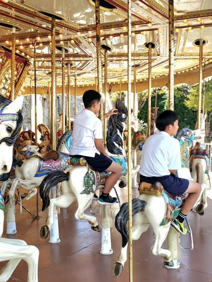 メリーゴーランドに仲良く乗っているところです。こういう乗り物もいいですよね。