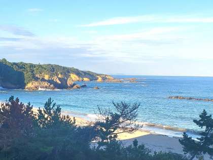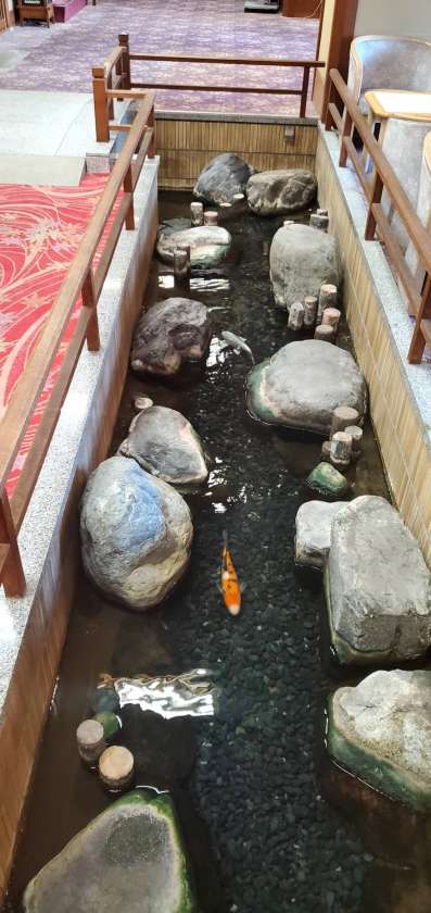 全室オーシャンビュー。お天気もよく最高の眺めです。またロビーには池があり、鯉が泳いでいます。毎年これに感動してくれる子どもがいます。