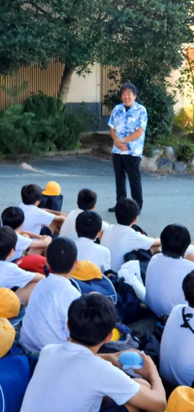 午前9時15分、閉舎式を行っています。この後鳥羽水族館に出発します。