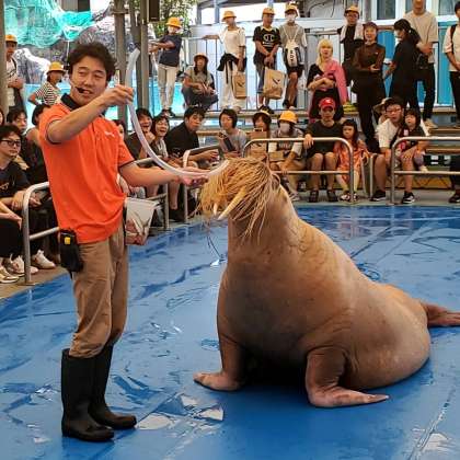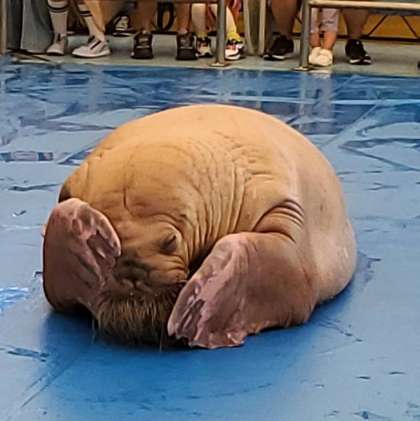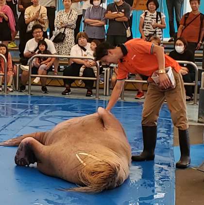 午前11時、セイウチのショーが始まりました。面白いので大人気です。