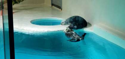 ラッコのコーナーです。やっぱりかわいらしいですよよね。でもだんだんと見ることができる場所が減ってきているのが残念です。
