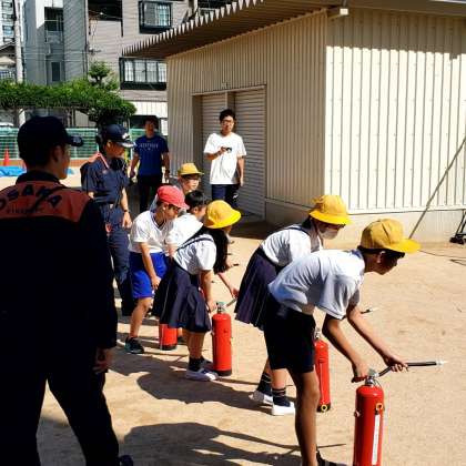 今日の2時間目、家庭科室から火災が発生したという設定で避難訓練を実施しました。今回は福島消防署の方々にお越しいただき、消化器の使い方などについても教えていただきました。お忙しい中本当にありがとうございました。