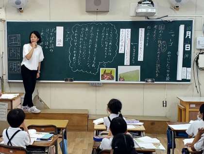 今日の5時間目、2年生の教室で国語科の授業研究会を行いました。「ニャーゴ」を題材に心情を読み取り、それを音読にどう生かすかを考えました。
