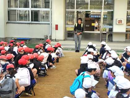 今日は3・4年生が遠足に出かけます。行き先は海遊館です。午前8時35分、予定どおりの時刻に学校を出発しました。