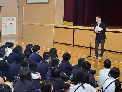 今日の午後、6年生が野田中学校に体験授業を受けに行きました。はじめに体育館に集合し、西田校長先生のお話を聞いた後、それぞれの教室に分かれてスタートしました。