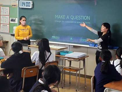 英語、家庭科、体育など、あらかじめ自分が選んだ教科を大開小学校の6年生と一緒に体験しました。初めての中学校での授業はどうでしたか?