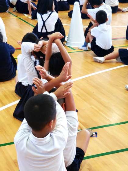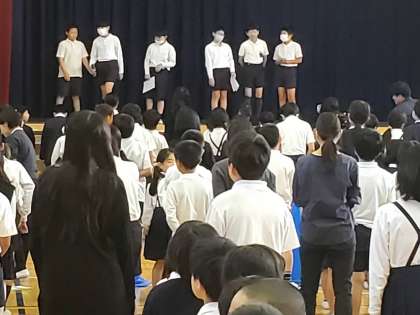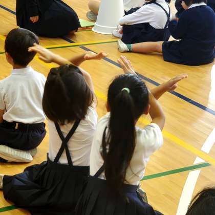 今日は??クイズをしました。「1年生の子どもの数は80人より多いか少ないか」など、低学年でも考えやすいように工夫されていたので、みんなが楽しむことができました。