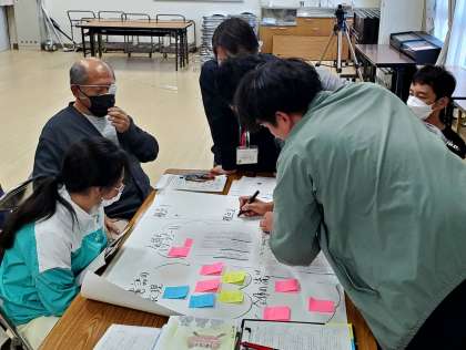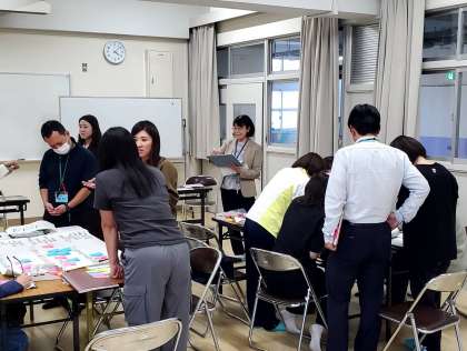 今日の2年生の「ニャーゴ」の授業を受けて、放課後に研究討議会を行い、改善点などについて考えました。
