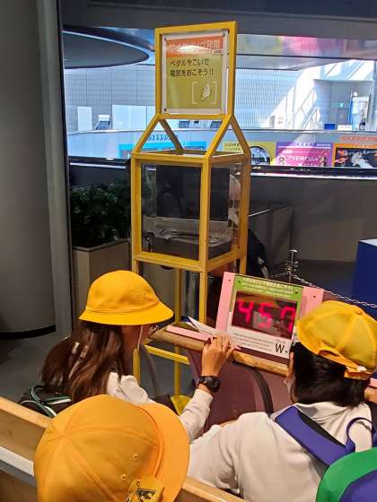 1階、電気とエネルギーのコーナーです。お昼が近づいてきて、かなりお腹がすいてきたようです。
