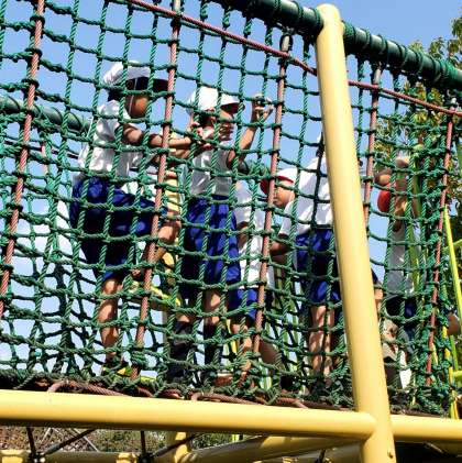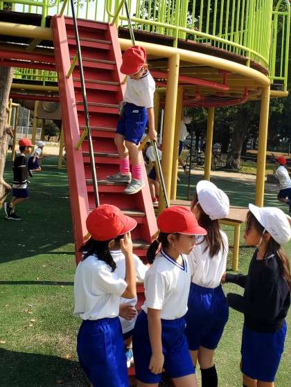 総合遊具で遊んでいます。比較的空いているので、のびのび遊ぶことができています。