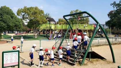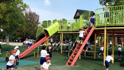午後1時前、楽しかった久宝寺緑地を後にして学校に戻ります。もう少し遊びたかったの声があちらこちらから聞こえてきました。