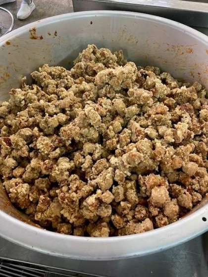 今日の給食は「まぐろのオーロラ煮、スープ、きゅうりとコーンのサラダ」でした。まぐろのオーロラ煮は、揚げたまぐろにケチャップと赤みそで作ったタレをからめています。とても人気のおかずです。給食後、食器や食缶を返してくれる子どもたちが「外はパリパリ、中はふわふわで、めっちゃおいしかった!」と感想を教えてくれました。