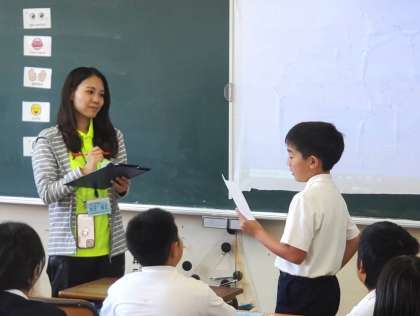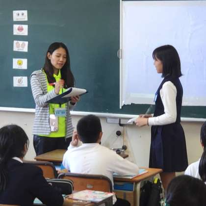 今日の4時間目、5年生が英語の学習をしている様子です。本時は道案内をする学習でした。時おりテキストを見ながらも、しっかり尋ねられた事にこたえることができていました。