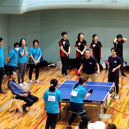 今日、福島区スポーツセンターにおいて、福島区PTA卓球大会が行われました。
